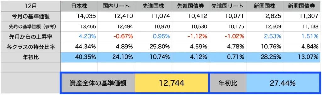 1年全体を通して、すべての資産クラスがプラスで終えられたことも良かったです。